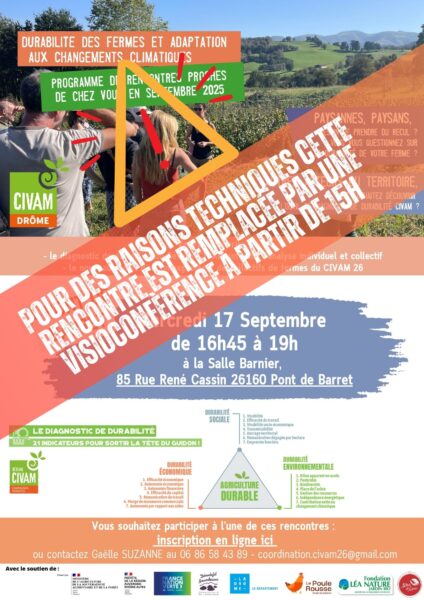 Aux agriculteurs et agricultrices du territoire de la Communauté de Communes Dieulefit Bourdeaux Pour des raisons techniques, la rencontre de ce mercredi 17 septembre qui
