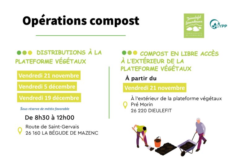 – à Dieulefit et à La Bégude de Mazenc, compost mûr