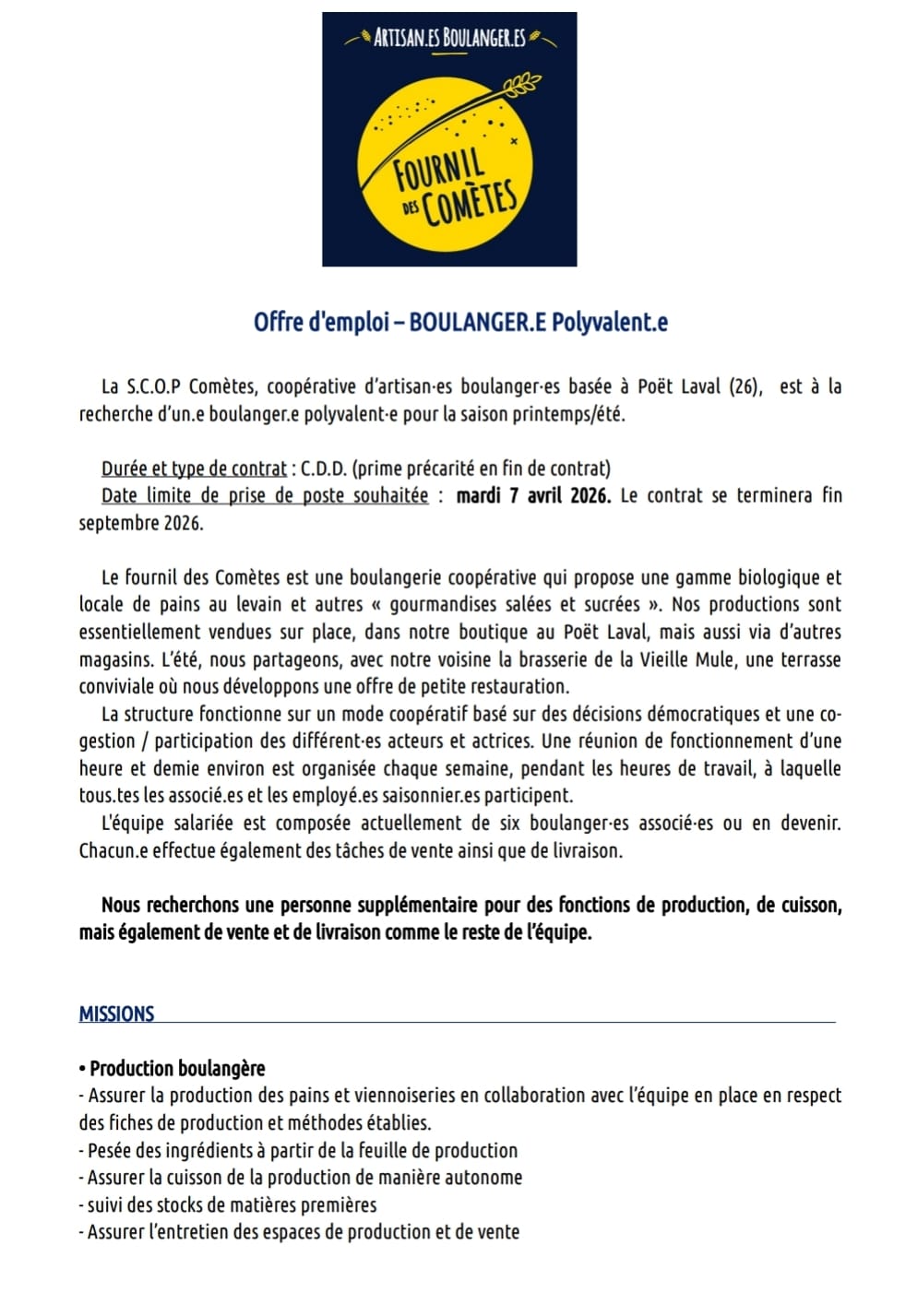 Offre d'emploi du territoire